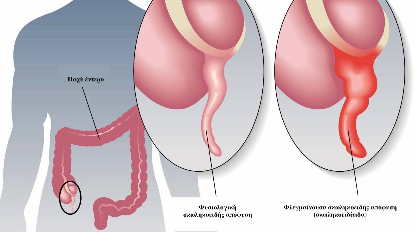 - οι καλοήθεις και κακοήθεις όγκοι της σκωληκοειδούς απόφυσης.